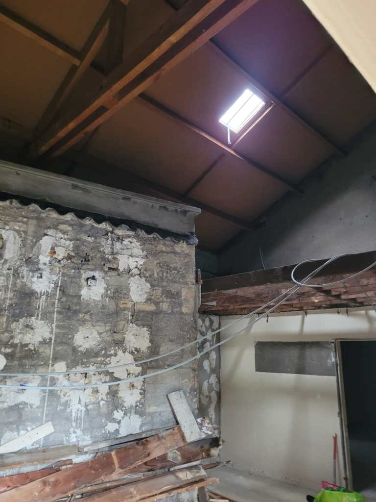 V-am atasat câteva fotografii facute astazi, în stadiul actual al lucrarilor; a fost scos atât lemnul de pe toti peretii, cât si mocheta veche, uzata. Peretii au fost curatati într-o oarecare masura, în asteptarea urmatoarelor lucrari.